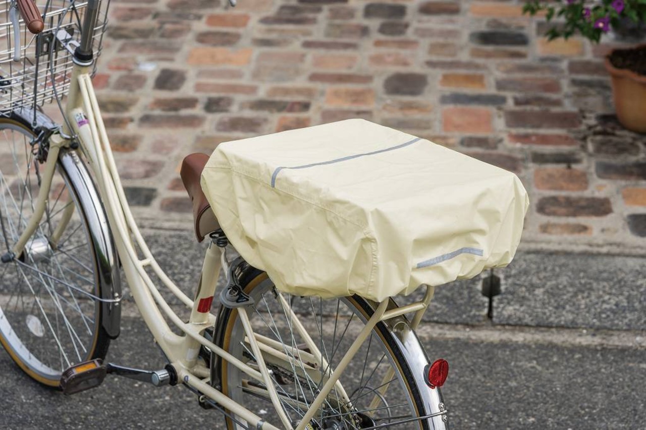 自転車のカゴ、カバン、リュックとマルチに使える防水カバー。ゴム口で簡単装着。反射テープで夜間も安心。